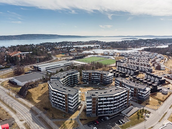 FORNEBU/ HUNDSUND- Strøken arealeffektiv 2-roms v/ sjøen m/ heis, balk. og *garasjepl. m/ el-lader.