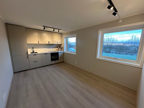 Leiligheten holder høy standard og stod ferdig desember 2025. Leiligheten er lys og det er lagt vekt på god romfølelse i kombinert stue og kjøkken og bad. Det er varme i alle gulv, og balansert ventilasjon i alle rom. Kjøkken og bad er helt nytt fra 2025 med nye hvitevarer. Boligen er godt isolert og har nye vinduer med ekstra lydisolering. Taket i de fleste rom er lektet ned med lydfellerfor å minimere støy mellom leiligheten og boligen. Vann og strøm er inkludert i husleien (forutsatt at forbruket holdes på et normalt nivå). Fiber/bredbånd er bestilt, og leietaker må tegne eget abonnement.