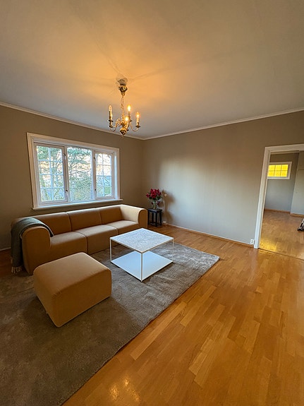 Hel leilighet/halvpart tomannsbolig leies ut. Den ligger i andre etasje i en tomannsbolig i Skådalsveien på attraktive Slemdal. Leiligheten består av 3 soverom, stue, spisestue, bad, kjøkken og entré. Det er også balkong med fin fjordutsikt og sol. Det er separat inngang med trapp opp til etasjen.