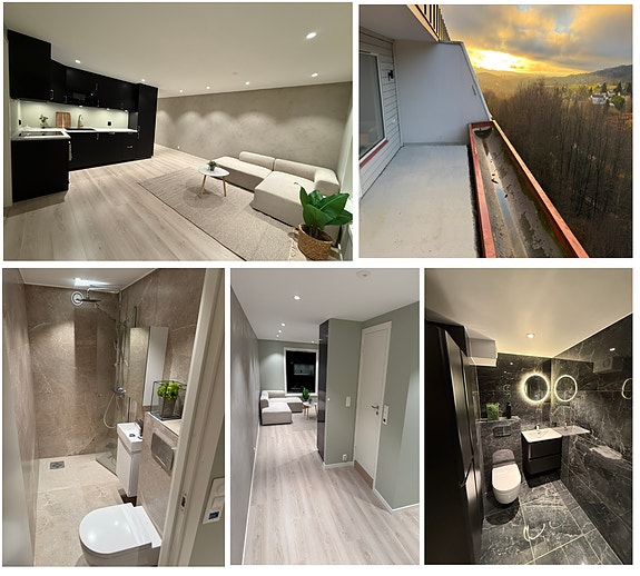 Leiligheten leies ut i sin helhet og har fire store, flotte soverom som prises fra 9.900,- til 11.900,- per rom, totalt 43.600,-, to flotte bad og to terrasser på 14 og 9 kvm. Leiligheten er nyoppusset i 2025 og har ikke vært bebodd. Her får dere særdeles høy bo-kvalitet for pengene.