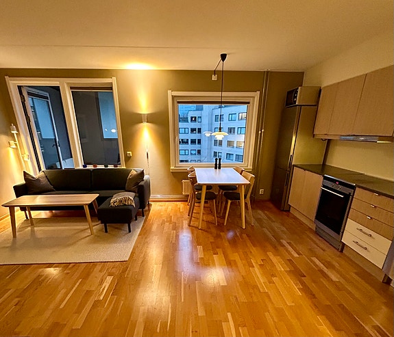 Leies ut fullt møblert og utstyrt med kjøkkenartikler, servise, støvsuger og annet nødvendig basisutstyr slik at du kan flytte rett inn