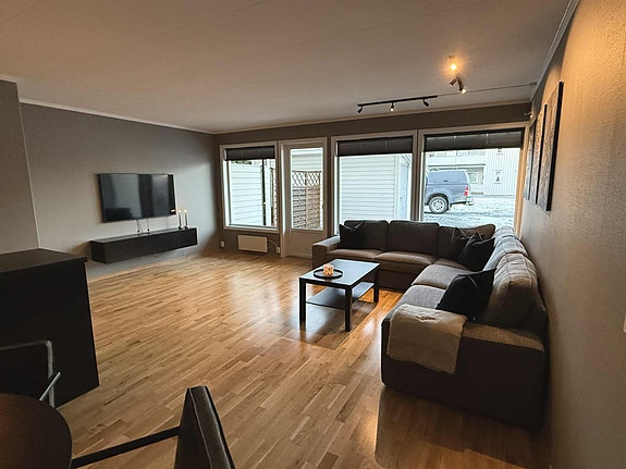 Leiligheten ligger i første etasje, i et støyfritt og barnevennlig område. Terrassen er vendt mot rolig felles tun, med relativt lite innsyn. På sommeren kan man nyte sola fra ca. kl. 12:00 og til den går ned.