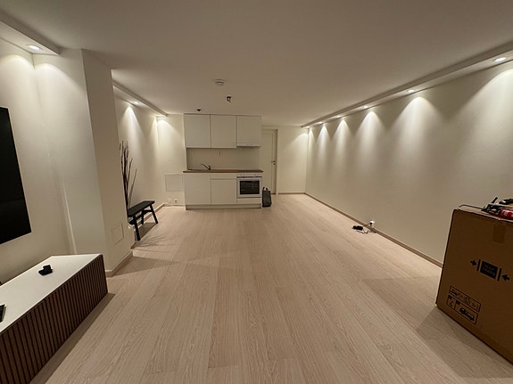 Helt nytt bad med nytt kjøkken og stue! Ca 35kvm, romslig, lys og fin! Den står i 1- etasje og er fortiden umøblert. Kan møbleres hvis ønskelig av oss, men dersom det er noen som ønsker å ha egne møbler før hybelen er helt ferdigstilt kan det vurderes😊. Hybelen holder meget god og høy standard.