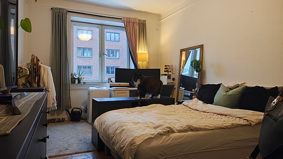 Vil du bo supersentralt? I så fall er et stort rom ledig i bofelleskap i Waldemar Thranes Gate! Du vil dele leiligheten med Aleksander (meg), 32 år, Stian, 33 år, og to katter. Jobber selv fulltid ved siden av studier og er ute etter andre rolige leieboere som ikke er redd for å slå av en prat. Rommet er ledig fra 01.03.2026