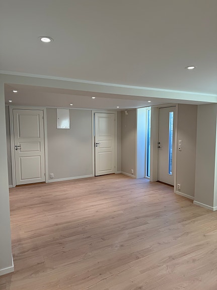 Lys og pen utleiedel i kjeller i enebolig, beliggende i et rolig og etablert boligområde – kun ca. 20 meter fra sykehuset. Leiligheten er helt ny og ubebodd, med moderne standard og egen inngang.