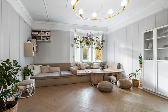 Large and practical apartment with high ceilings. Great location in a stately building with a view of the park. Walking distance to everything, 2 minutes to the train station. New kitchen with appliances, 2 bedrooms with space for 3, large sofa that can be used as a bed for 3, large living room, bathroom with washing machine. Rented fully furnished with all kitchen utensils, towels, bedding, etc. for short or long periods, not less than 3 days.