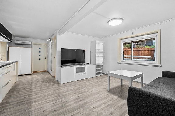 Praktisk og moderne sokkelleilighet i rolige omgivelser i Sjølystvegen 21 A. Leiligheten har en god planløsning og passer perfekt for én person eller et par som ønsker en enkel og bekymringsfri bosituasjon.