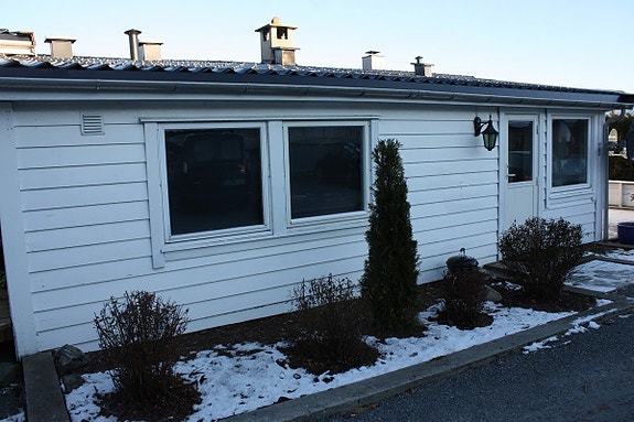 Huset ligger på toppen av bakken, i grønne omgivelser. Her er det stille og fredelig i et trivelig nabolag. Leiligheten ligger på bakkeplan (ikke kjeller).