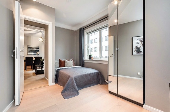 Leiligheten er oppusset i 2018 og er lys og moderne innvendig. Speilskap er fastmonetert og følger med rommet.
