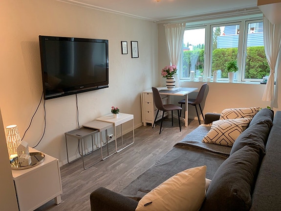 Lys og pen leilighet i rolig nabolag leies ut. Leiligheten er møblert og inneholder det aller meste, bortsett fra TV. Strøm, herunder oppvarming (gulvvarme), er inkludert i leieprisen. Det samme er internett og tv-pakke (Telia).