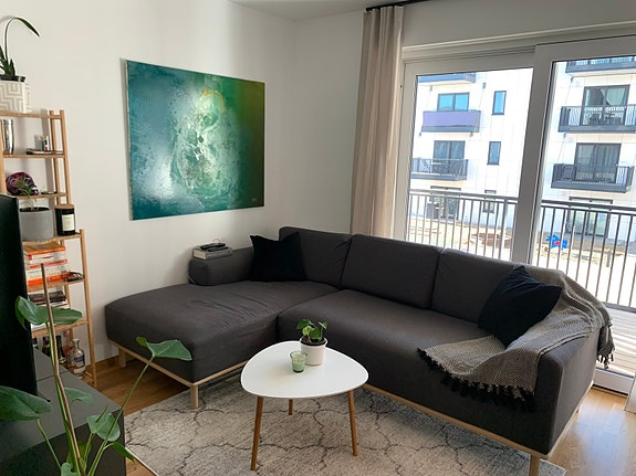 Leiligheten ligger i et nyere nabolag med moderne bebyggelse og spennende arkitektur fra 2019, som holder en gjennomgående god standard. Heisadkomst opp til 2. etasje hvor leiligheten ligger. Her har du balkong, bad med opplegg for vaskemaskin, entré, alkove delvis skjermet med spilevegg og et allrom bestående av stue og kjøkken.