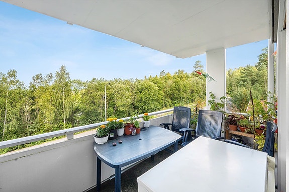Med utsikt over skogholt og lite innsyn, oppleves leiligheten som usjenert.