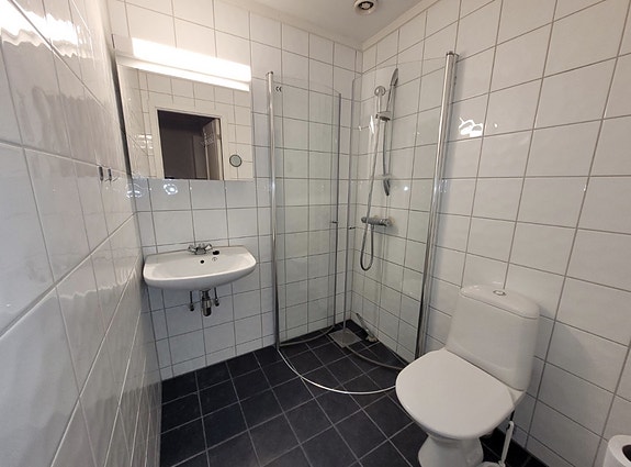 Hybelen er nymalt, har vegg ovn i hvert rom. Baderommet er ny renovert med gulv varmer. Det er vanlig hybel kjøkken og felles vaskekeri.