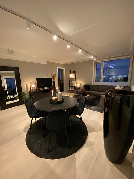 Lys og luftig stue/kjøkken med store vindusflater gir en god romfølelse og plass til både sofa- og spisegruppe. Fra stuen er det utgang til herlig terrasse med gode solforhold og flott utsikt.