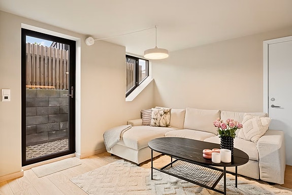 Kort vei til T-bane og buss. Kjøpesenter, dagligvarebutikker og gode turmuligheter i umiddelbar nærhet.