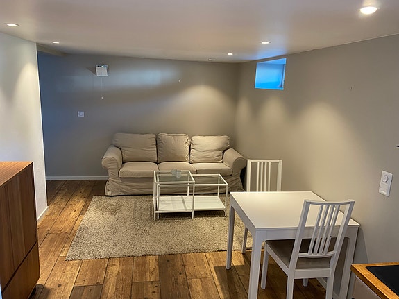 Fin 2 roms leilighet til leie i kjeller på Høvik med egen inngang. Fullt møblert. Mulighet for egen uteplass til disposisjon for leietaker. Varme i alle gulv, downlights i alle rom. Alle hvitevarer inkludert - som kjøl/frys, oppvaskmaskin, induksjon koketopp, komfyr og vaskemaskin.