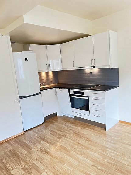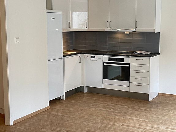 Leiligheten har god standard med fliser på bad, parkett, stort kjøleskap m/frys, komfyr og oppvaskmaskin.