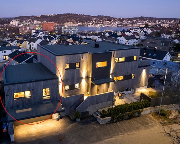 Boligen byr på fantastisk utsikt og egen balkong med tilhørende gressplen – et flott og privat uteområde. Eiendommen ligger på populære Hauan, rett vest for bykjernen, med utsikt mot Indre Havn. Her bor du stille og fredelig, men samtidig svært sentralt.