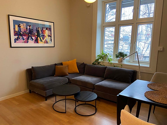 3-roms leilighet i rolig strøk til leie fra 1. februar. Leies ut til august, med mulighet for forlengelse. Det er en gjennomgående endeleilighet med vinduer på 3 sider i 3. etg. Leiligheten inneholder 2 soverom, bad, stue og kjøkken, har god takhøyde og store vindusflater. Leies ut fullt møblert. Det ene soverommet har en 1,50-seng og det andre soverommet en 1,20-seng. Det er store garderobeskap på begge soverommene, i tillegg til i gangen. Det er en kombinert vaskemaskin og tørketrommel på badet. Internett er inkludert i prisen. Leietaker tegner eget strømabonnement (Norgespris). Kjellerbod på 9 kvm kan benyttes. Leiligheten har en meget populær beliggenhet på Sagene med kort vei til de fleste fasiliteter: SATS, Kaffebrenneriet, dagligvare mm. 3 min gange til kollektivlinjer både Nord/Sør og Øst/Vest. Kort vei til friluftsområder ved Vøienvollen gård, Akerselva, Voldsløkka og Sognsvann.