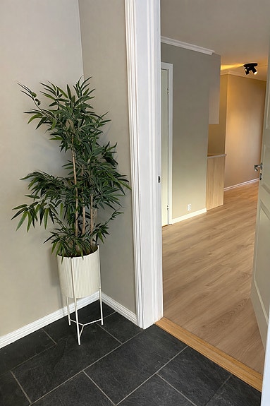 Boligen har nytt kjøkken, baderomsinnredning, nymalte vegger og nytt gulv i stue/kjøkken. Leiligheten fremstår som lys, moderne og innbydende. Store vinduer gir rikelig med naturlig lys, og det er varmekabler i både stue, kjøkken, yttergang og bad.