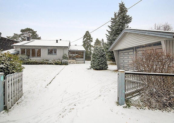 Enebolig sentralt i Jessheim sentrum. Stor dobbeltgarasje med plass til 2 biler og stor utvendig lagringsbod.