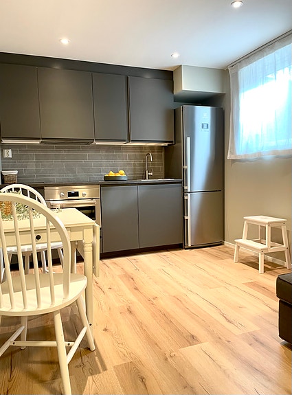 Leiligheten er på ca 35 m2 og ble totalrenovert sommeren 2023, inkludert nytt bad og kjøkken. Nytt gulv med varmekabler på stue/kjøkken fra 2025. Leiligheten består av entré med en liten bod, åpen stue/kjøkkenløsning med sofa/salong og kjøkkenbord, soverom med 140-seng med oppbevaringsplass, garderobeskap og stor kommode, samt et bad av god størrelse med varmekabler. Leiligheten er fullt møblert, inkludert hvitevarer og oppvaskmaskin, og har elektrisk ventilasjon.