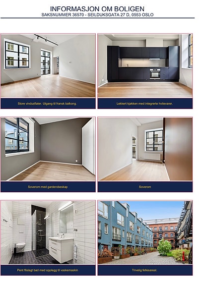 Leiligheten ligger sentralt på Grünerløkka (Seilduksgata 27), relativt nyoppusset, to soverom, stor stue med kjøkken, fransk balkong i leiligheten, to kjellerboder og to store felles takterrasser. Det er det største soverommet som nå blir ledig.