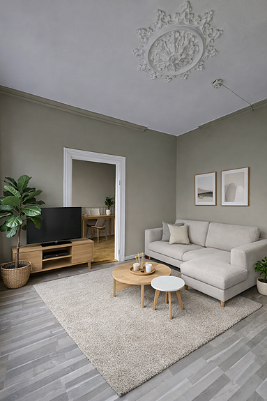 - Lys og trivelig stue med store vinduer
