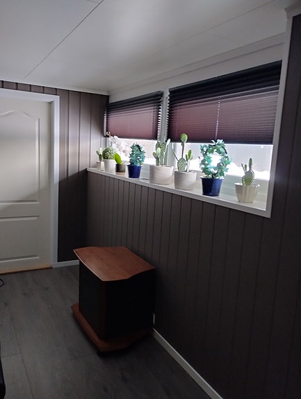 Egen inngang, med gang, toalett rom, stue og kjøkken, soverom og bad med dusj.