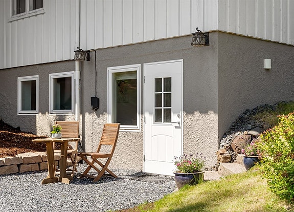 Egen inngang på bakkeplan. Elbil-lader kan brukes etter avtale.