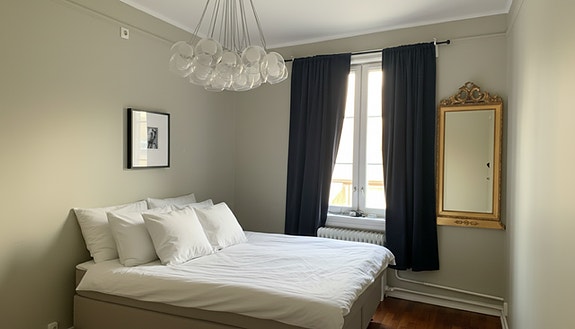 Det er høyt under taket og det gir en luftig og god romfølelse. Leiligheten er nok mest egnet for 1 person eller et par. Den er ikke stor men helt perfekt for deg som trenger en sentral leilighet som inneholder alt du trenger.