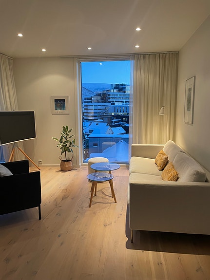 Moderne og lys. Leiligheten ligger i 6 etasje med heis. Leieperioden kan justeres.