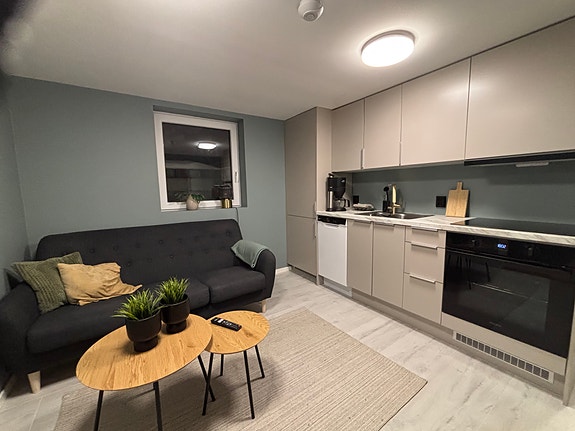 Nyt en stilfull opplevelse på et sted med sentral beliggenhet til sentrum på 3km eller 1,5km til stranden. Topp moderne leilighet med oppvaskmaskin, kjøkkenutstyr, sofakrok og tv. Eget rolig soverom med pult og klesskap.