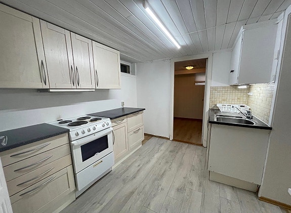 Romslig 3-roms sokkelleilighet med p-plass, strøm og varmtvann inkl.