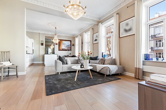 Gjennomgående høy standard i hele leiligheten, beliggende i en velholdt bygård fra 1895. Med sin store takhøyde samt store vindusflater har du godt med naturlig lys i boligen.