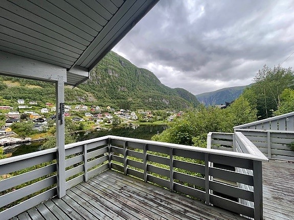 Utvendig så har man tilgang til en stor hage og terrasse med flott utsikt over Stanghelle.