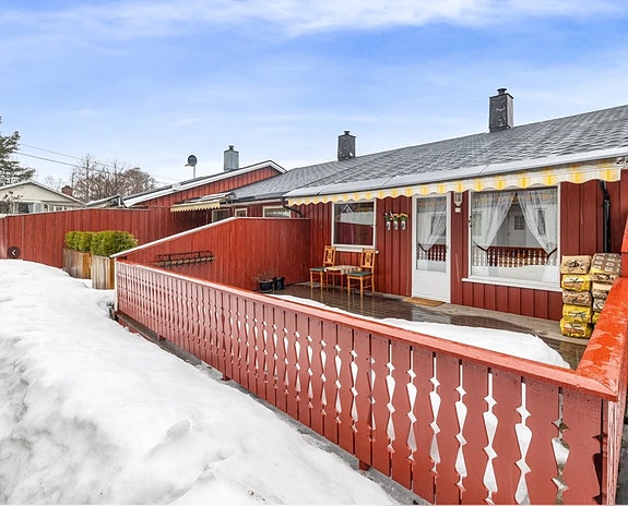 Nylig renovert 4-roms koselig rekkehus på ett plan - Egen parkering, og solrike terrasser på ca. 35 kvm!!!