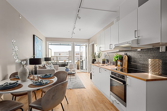 Leiligheten vil være møblert med dobbelseng, garderober, kjøleskap, oppvaskmaskin, stekovn og platetopp. Bord/stoler/sofa og vaskemaskin er ikke inkludert.