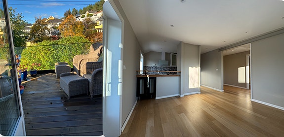 - Praktisk romløsning med to soverom, kjøkken, bad og stue. Stor balkong på 16 kvm med sol fra ca kl. 11 til den går ned for kvelden om sommeren.
