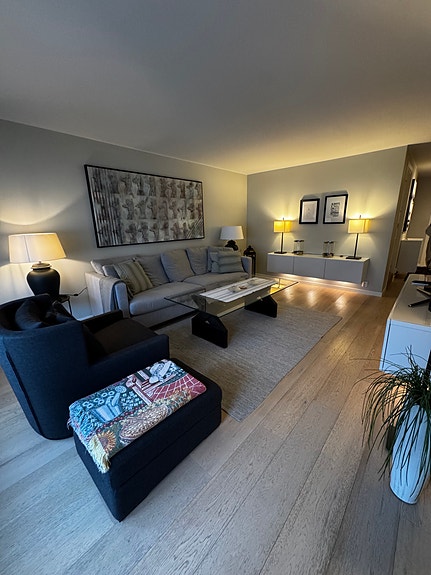 Leiligheten ble nyoppusset for ca. 3 år siden og leies ut fullt møblert i lyse, behagelige fargetoner. Her er det godt med skap- og oppbevaringsplass, og planløsningen gir en luftig og innbydende følelse.