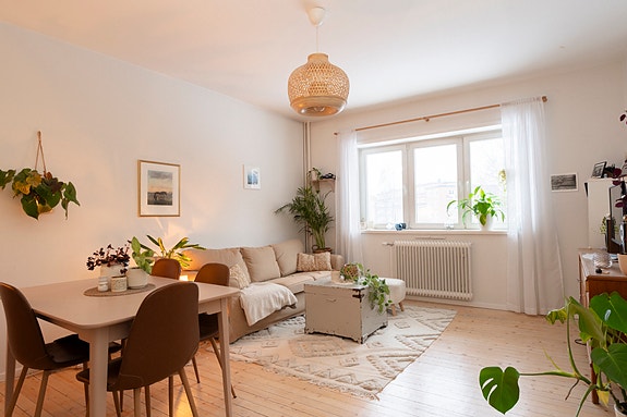 Sørovervendt stue med mye dagslys