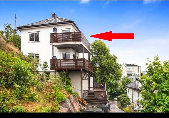 Stor og moderne leilighet med island kjøkken, stor smart tv i stua, egen stue oppe og felles stue nede. Veranda og god utsikt over byen.