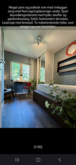 Storo/Nydalen: rom ledig i bofellesskap, speil skyvedører, skrivebord, innbyggingsseng med lagring, lesekrok