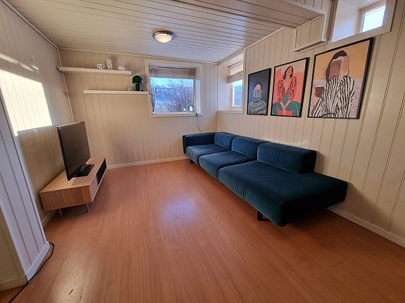Leiligheten er så godt som fullt møblert med hvitevarer og inneholder et lyst oppholdsrom med store vinduer, et soverom med plass for dobbeltseng, og et flislagt ny bad med gulv varme. Det er også et eget vaskerom med vaskemaskin og tørketrommel.