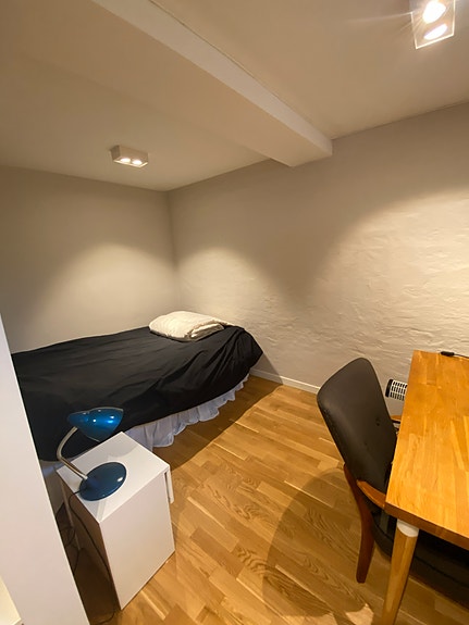 Rom til leie i sokkelleilighet i bofellesskap med én annen. Leiligheten har delt bad og kjøkken, og passer godt for student eller rolig leietaker.