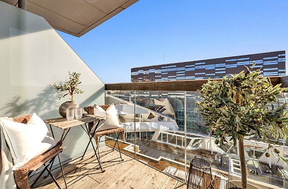 BARCODE - Møblert og moderne 2-roms i 16. etg. Balkong og felles takterrasse - Fyring og varmtvann inkludert. Ledig 1.2