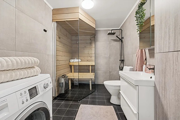 - Moderne bad med sauna, dusj, gulv varme og vaskemaskin