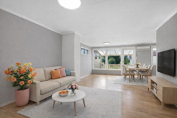 Leiligheten er for tiden under oppussing, og det er derfor ikke anledning til å avtale visning på nåværende tidspunkt. Bildene som benyttes i annonsen er møblert ved hjelp av AI og er kun ment som illustrasjon.