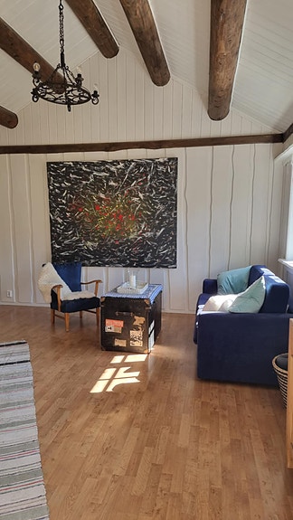 Nært badevann og i marka. Leiligheten er halvparten av et koselig rødt hus på gården vår. Leiligheten er i lyse farger, utsikt til skog og jorder, stue med kjøkkenkrok, wc, dusj, håndvask, ett lite soverom, egen inngang med entre, p-plass/ oppstillingsplass til 1 vanlig bil (ikke lastebil e.l.)