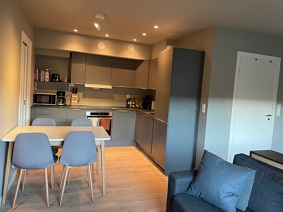 Fin leilighet som kun er 6 år gammel. Stue med åpen kjøkkenløsning , separat soverom og stort bad.